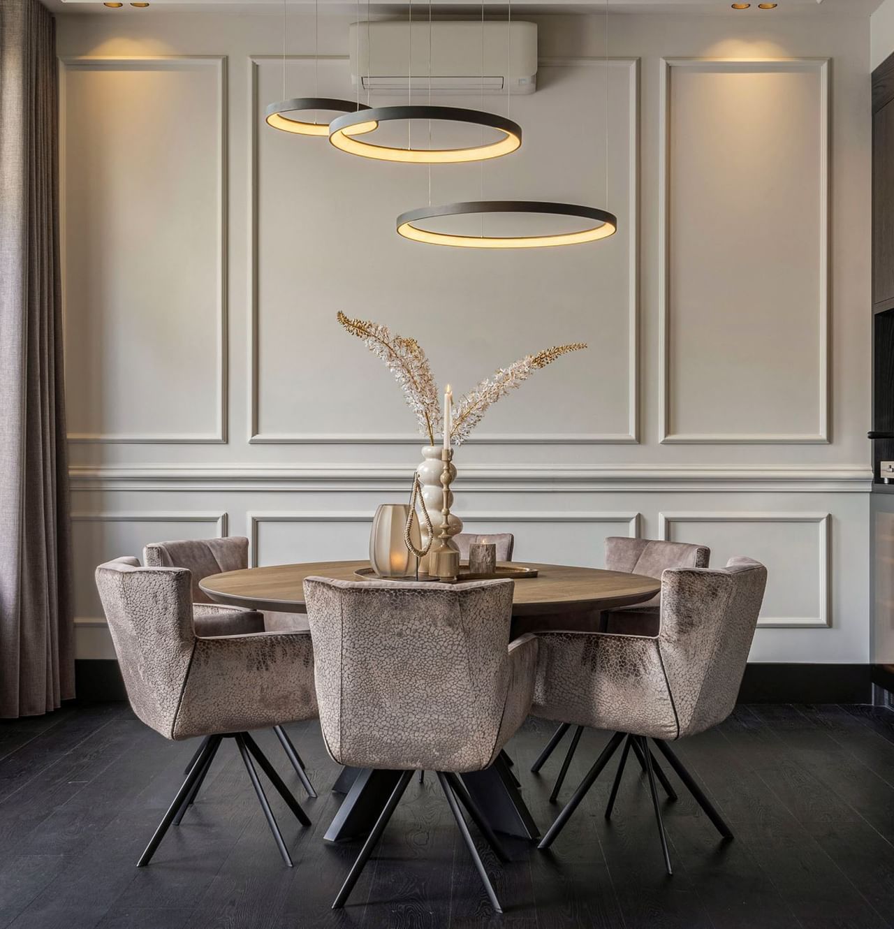 Ronde tafels: Ronde tafels zijn een perfect keuze voor kleinere ruimtes en brengen een warme, uitnodigende sfeer in je eetkamer. Bij een ronde tafel zit je altijd dicht bij elkaar, wat het makkelijker maakt om gesprekken te voeren en samen te genieten van het moment. Dankzij het ontbreken van hoeken bespaar je ruimte en beweeg je gemakkelijk rondom de tafel. Ronde tafels zijn veelzijdig en passen perfect in een gezellige, informele setting.