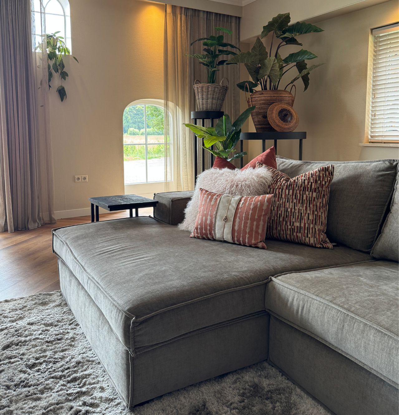 Een andere gemakkelijke manier om sfeer toe te voegen, is het gebruik van sierkussens. Door te variëren in kleuren, structuren en formaten ontstaat een rijk palet dat je zithoek direct karakter geeft. Combineer bijvoorbeeld zachte velvet kussens met een kussen met een grovere structuur of voeg een paar opvallende kleuren toe die passen bij je interieur. Zo voelt je ruimte meteen warm, sfeervol én stijlvol aan. Onze interieuradviseurs helpen je graag bij het kiezen van de juiste kussens en textielaccessoires die passen bij jouw persoonlijke stijl.