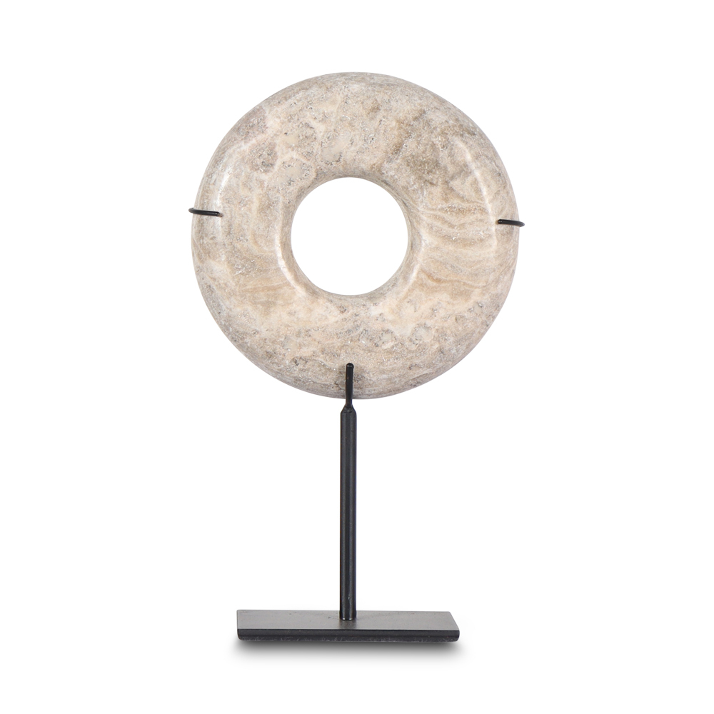 De Hanua marmeren ring op standaard kecil, een prachtig ornament dat een vleugje elegantie toevoegt aan elk interieur. Dit prachtige stuk ziet er prachtig uit als set, maar kan ook worden gecombineerd met andere decoratiestukken voor een unieke en persoonlijke look. De kleinste van de drie afmetingen heeft een diameter van 20 cm en is gemaakt van hoogwaardig marmer en ijzer.