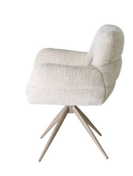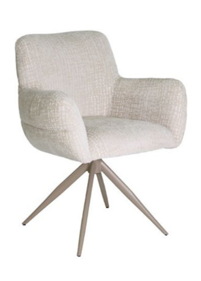 De Merel eetkamerstoel is een elegante stoel met zachte rondingen in de rug en een verfijnde afwerking. Een leuk en praktisch detail: de stoel kan draaien, wat zorgt voor extra comfort en gemak aan tafel.